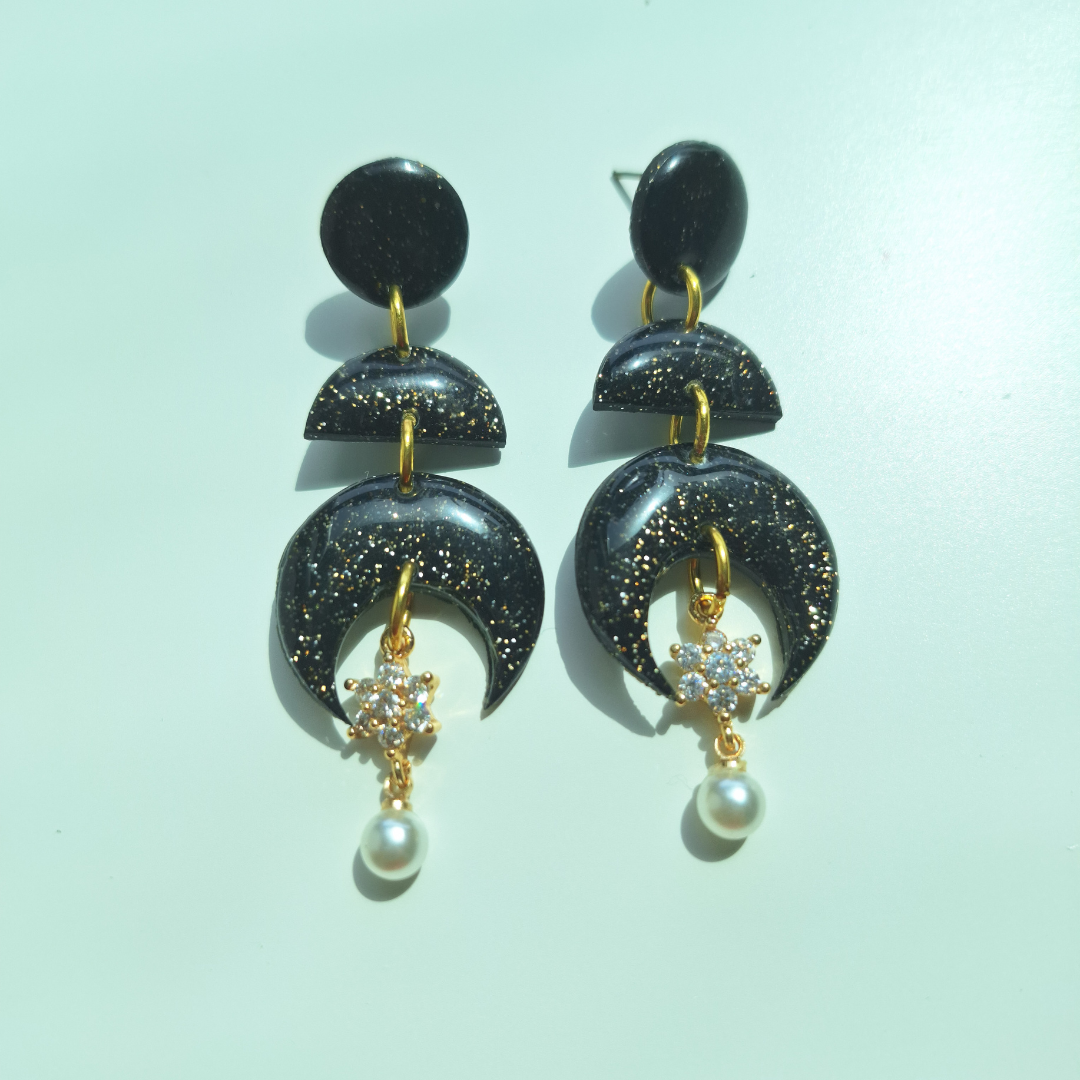 Black leafy earrings